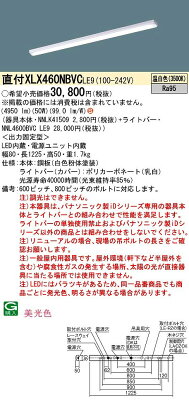 カテゴリ:照明器具 施設照明 LEDベース照明 一体型LEDベースライト メーカー:Panasonic パナソニック 型番:xlx460nbvcle9天井直付型 iスタイル 【器具本体】NNLK41509 2,800 円(税抜) 【ライトバー】NNL4600BVC LE9 28,000 円(税抜) LED内蔵、電源ユニット内蔵※外観・仕様は予告なく変更することがありますのでご了承ください。