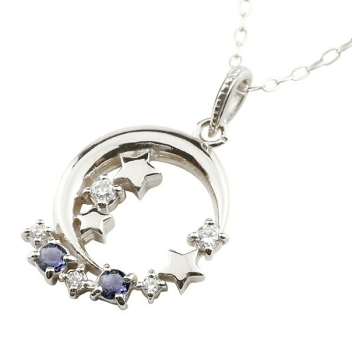 アイオライト ネックレス ホワイトゴールド ダイヤモンド ペンダント 星 スター 月 チェーン 人気 k10 レディース 10金 送料無料