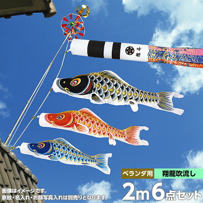 こいのぼり ベランダ用 鯉のぼり 村上 鯉 鯉幟 ベランダセット STホームセット 家紋・名前入れ・お顔写真入れ可能 セット各種(翔龍吹流し・矢車・取付金具・ロープ付ポールセット) 大空悠々2m6点セット 人形広場 天