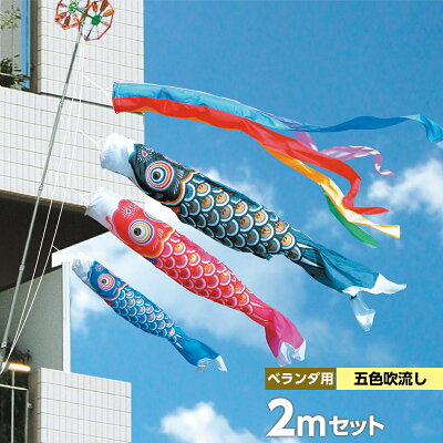 吹流し2m/黒鯉2m/赤鯉1.5m/青鯉1.2m/矢車 矢羽根直径26cm/ロープ6m/ポール2.3m矢車・ロープ・ポール・吹流し・黒鯉・赤鯉・青鯉狭いスペースにも軽量で取り付け簡単!ポールの角度は自由自在なので各種ベランダに合わせて角度を変えれて、ほとんどのベランダに設置が出来て豪華に端午の節句のお祝いが楽しめます。